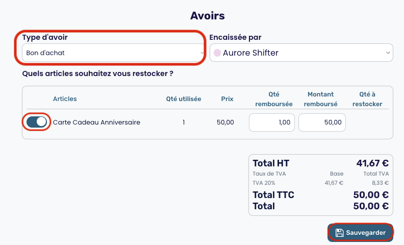 Sur cette même facture, créez ensuite un avoir de type « Bon d’achat ».