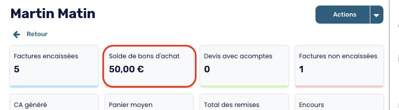 - Lors de l’utilisation : transformer la facture en avoir → crédit sur la cagnotte du client.